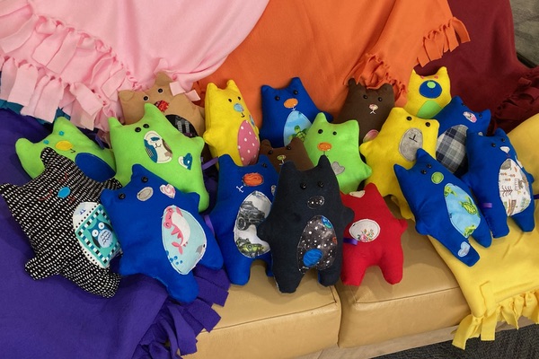 The event was a day of giving back to the community, with donation stations set up on campus for students and members of the community to donate items toward local needs. Participants came together to write letters of hope, sew teddy bears, prepare blankets and NICU cuddle cloths, and assemble humanitarian kits.